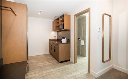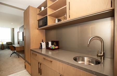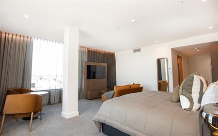 Indulge in the Suite life, ideal for work, play or a bit of both. Poised on the corners of floors 2-7 of the hotel. Kitchenette with microwave, fridge & Nespresso coffee machine. Bathroom equipped with dual fixture walk-in rain shower, freestanding bathtub & 2 basins, washer & dryer. Air-conditioning, smart TV, FREE unlimited WiFi.